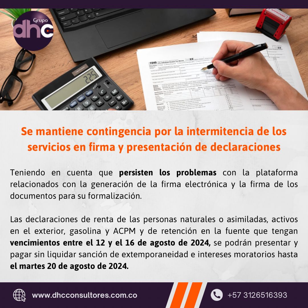 Se mantienen contingencia por la intermitencia de los servicios en firma y presentacion de declaraciones